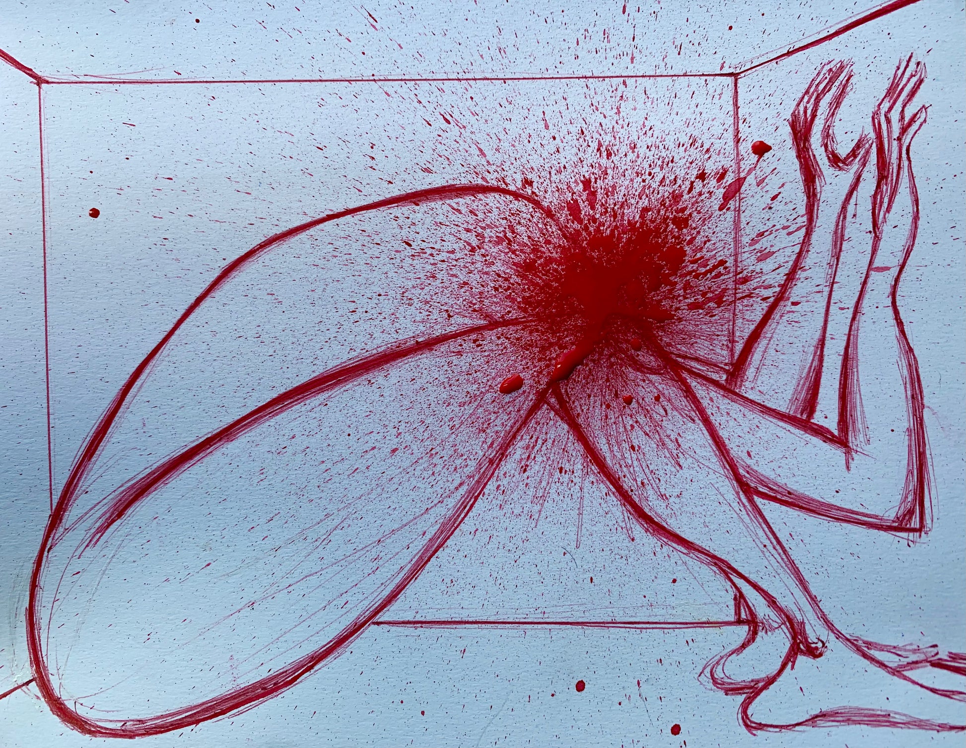 11”x 8.5” Quality Archival print. Embellished with real red ink for the splatter